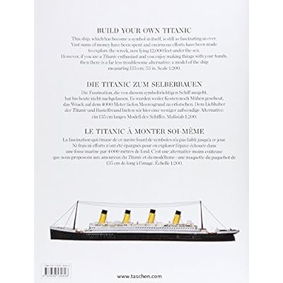 Il y a un siècle, par une nuit tragique...Un modèle réduit du Titanic à construire soi-même à l occasion du 100e anniversaire de son naufrageÀ tous les mordus du Titanic, les fans de modèles réduits et les amateurs de bateaux: construisez un modèle en carton du célébrissime navire!Des efforts immenses ont été déployés et des sommes abyssales englouties dans l exploration de l épave qui repose toujours à près de 4 000 mètres sous le niveau de la mer. Mais pour tous les passionnés du Titanic qui ont la fibre manuelle, il existe une alternative beaucoup moins pénible qui vous permettra d explorer le navire en détail: une maquette en carton de 135 cm de long à l échelle 1/200 (toutes les pièces sont prédécoupées, et accompagnées d une notice de montage détaillée).À l occasion du 100e anniversaire du tragique voyage inaugural du Titanic en 1912, la maquette du Titanic de TASCHEN est la plus belle des commémorations.