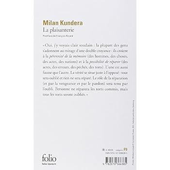 "L'optimisme est l'opium du genre humain ! L'esprit sain pue la connerie. Vive Trotski !" : première plaisanterie de Ludvik, qui lui vaut d'être exclu du Parti Communiste à l'unanimité. Seconde plaisanterie, de la vie cette fois : des années après sa radiation, Ludvik tente de se venger d'un des membres du parti qui s'est montré particulièrement dur, en lui volant sa femme, qui s'avère ne plus lui appartenir depuis longtemps déjà. La vengeance a donc échoué. Cependant, d'une plaisanterie à l'autre, Kundera nous aura offert un bijou d'humour noir, mais aussi une réflexion brillamment illustrée sur l'unicité des choses et des êtres, ponctuée d'évocations superbes des coutumes moraves, d'incursions dans le monde absurde du totalitarisme communiste et d'introspections lucides. En alternant savamment les points de vue de Ludvik, Helena, Jaroslav et Kotska, Kundera semble nous signifier qu'au bout du compte, c'est l'idée même d'individu qui lui importe. --Sana Tang-Léopold Wauters